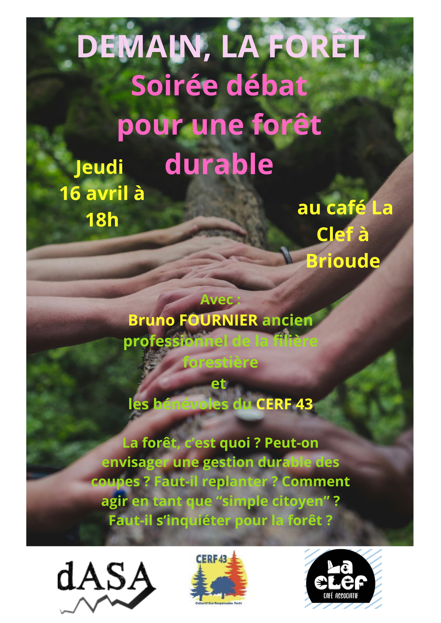 Bruno FOURNIER ancien professionnel de la filière forestière et les bénévoles du CERF 43 vous proposent un café pour parler de : La forêt, qu’est ce que c’est ? Peut-on envisager une gestion durable des coupes ? Faut-il replanter ? Comment agir en tant que “simple citoyen.ne” ? Faut-il s’inquiéter pour la forêt ?