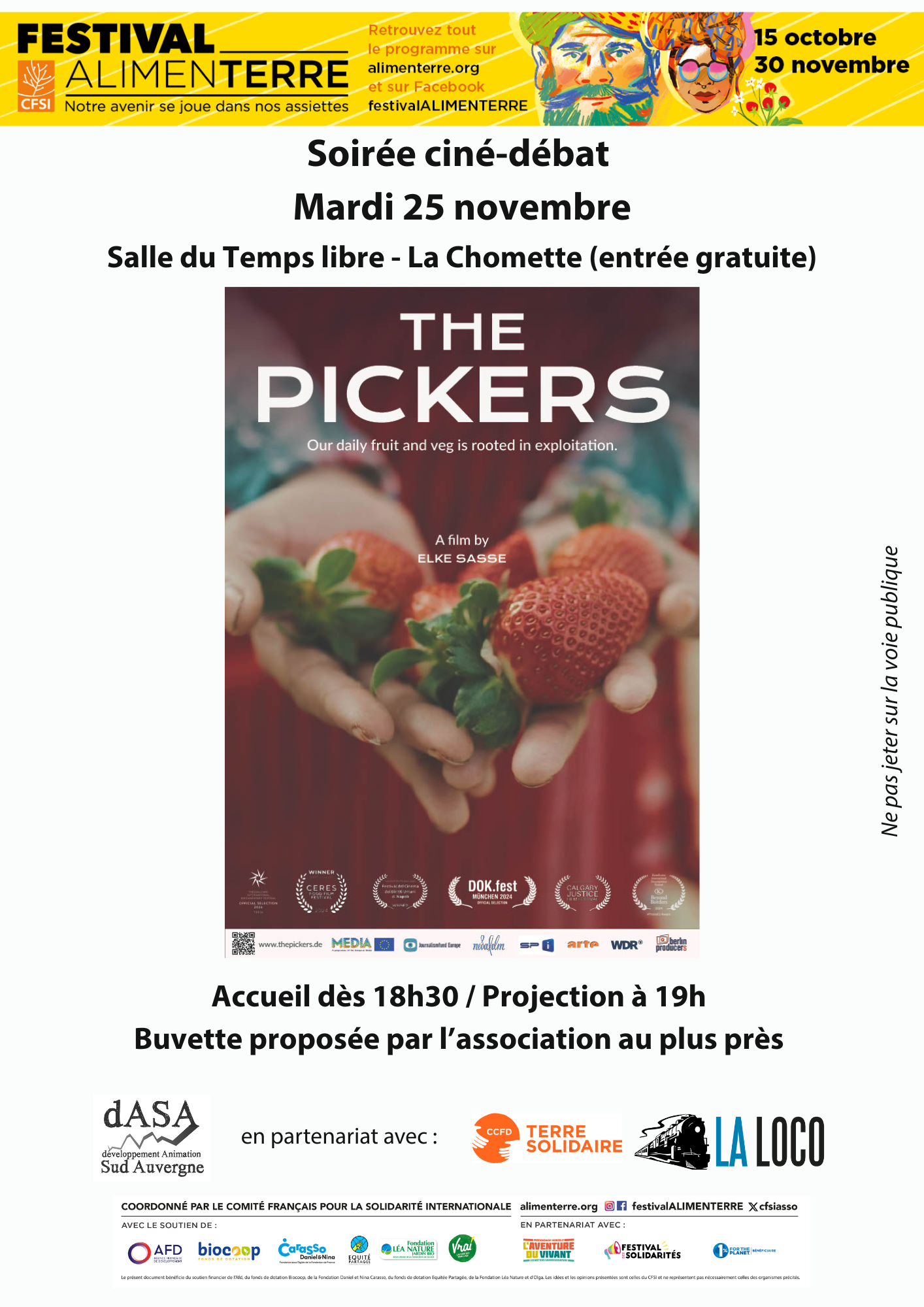 dASA, le CCDF Terre Solidaire et la Loco organise une projection débat du film « The Pickers ».
