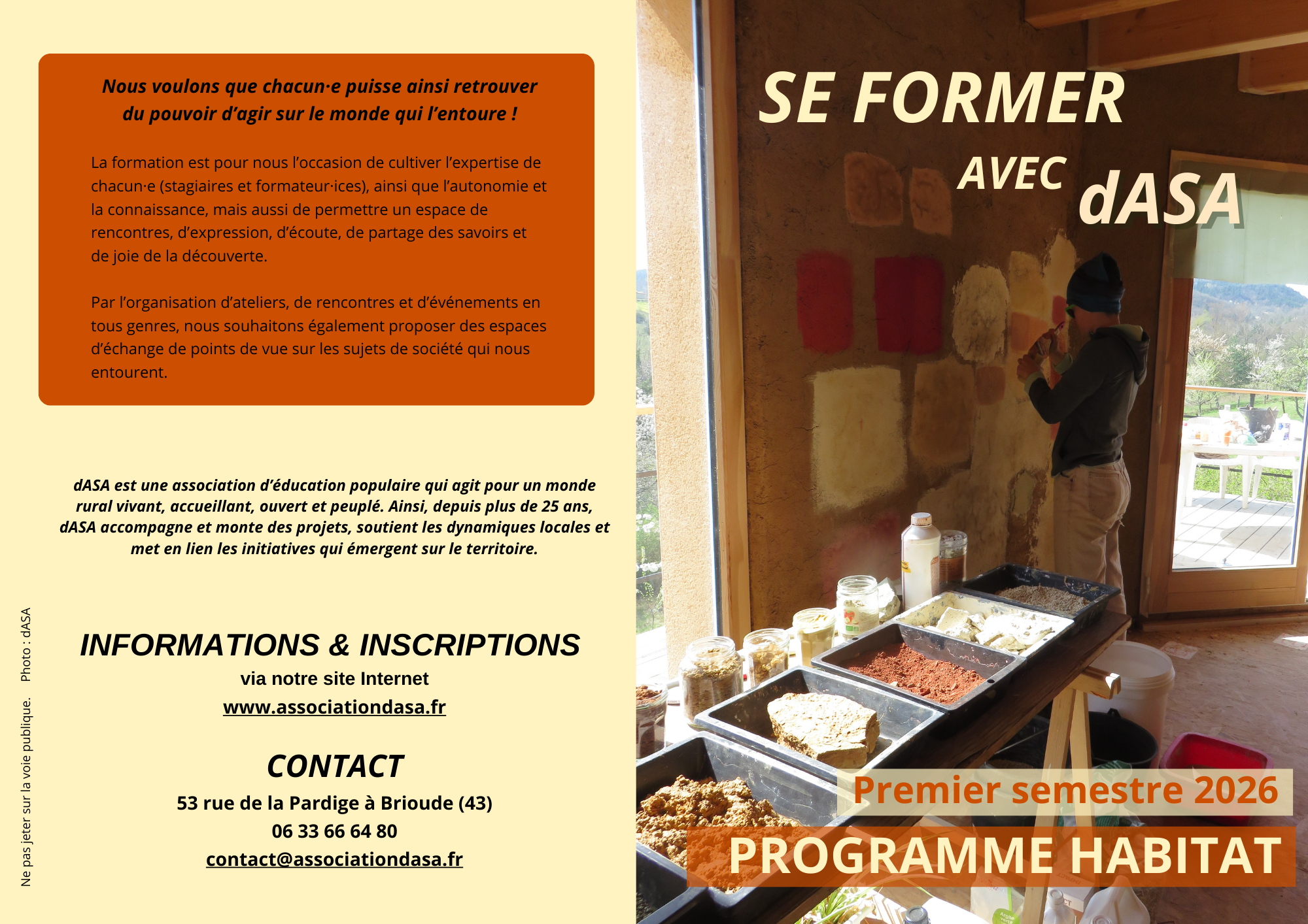 Nous organisons avec des auto-constructeu·rices ou des professionnel·les du bâtiment des journées de découverte d’une technique grandeur nature sur chantier en invitant les participant·es à mettre la main à la patte. Les thématiques sont variées : phyto-épuration, technique paille GREB, enduits à la chaux… L’objectif de ces journées est de permettre aux participant·es de découvrir une technique et d’en comprendre les avantages et les inconvénients, par la pratique. Cette activité est gratuite. L’association n’étant pas financée pour l’organisation de ces chantiers, nous invitons les participant·es à nous soutenir par le biais de la cotisation ou du don.