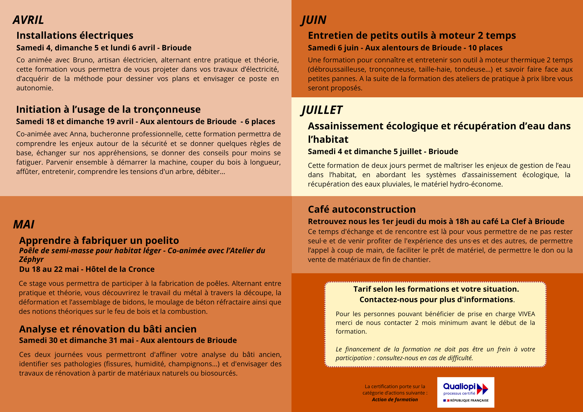 Prendre le temps d’une ou plusieurs journées de formation vous permettra d’acquérir connaissances et compétences, de faire des choix efficaces, de réaliser des économies de temps et d’argent, d’adopter une démarche plus écologique et de commencer à créer votre réseau et ainsi de ne pas rester seul·e.